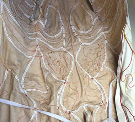 Three fully functioning, technologically advanced bodysuits were developed, allowing wearers to communicate with one another through touch across distance. Each bodysuit was technologically augmented with capacitive sensors and vibration actuators distributed across multiple locations, enabling wearers to touch others simultaneously by touching themselves at corresponding points. The design of the bodysuits is inspired by human anatomy, distilling it into three distinct layers beneath the skin: fat layers, muscle tissue, and veins and arteries. In doing so, the project externalises what is commonly understood as sacred and untouchable about the human body, namely what lies beneath the skin, in order to foreground the increasing degree of technological intervention into bodily matter.